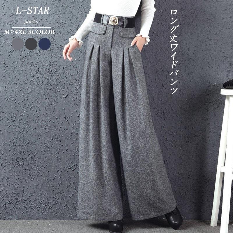 ワイドパンツ レディース 秋冬 ガウチョパンツ ボトムス パンツ ズボン ロング丈 ラシャパンツ ウエストゴム ロングパンツ タック 秋 冬 厚手 40代 コーデ Cbot097 L Star 通販 Yahoo ショッピング